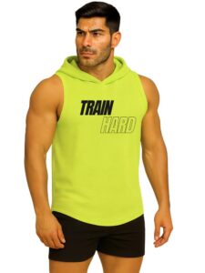 Available in multiple premium colors, this printed hooded gym vest is ideal for daily workouts, sports, outdoor activities, and casual wear.